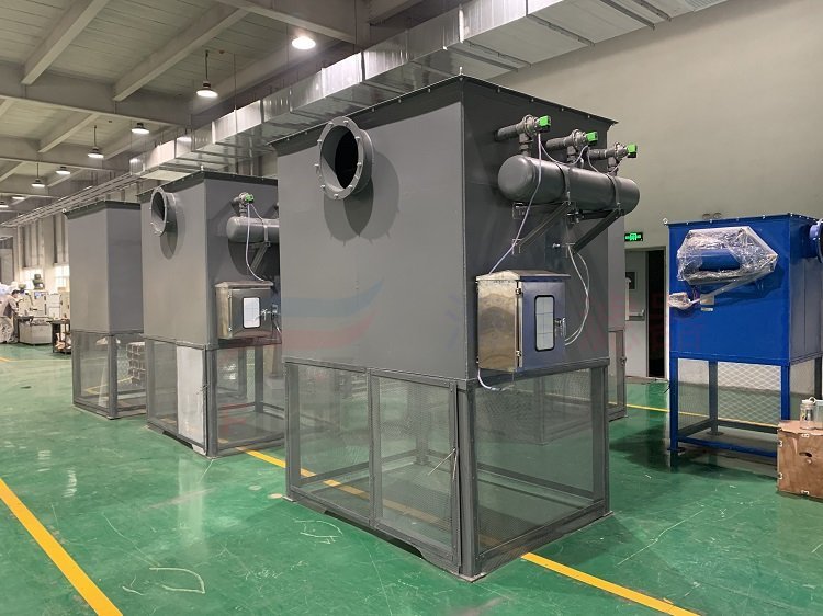 由控制系統(tǒng)發(fā)出指令,電磁閥啟動(dòng),瞬間釋放一股壓力為0.4~0.8MPa脈沖氣流,經(jīng)專(zhuān)用噴頭整流噴出,文氏管卷吸、密封、膨脹,從濾筒內(nèi)部均勻向外沖出,將積聚在濾桶外表的粉塵吹落。此時(shí)一組過(guò)濾筒自潔過(guò)程完成,其它過(guò)濾筒照常工作,以此輪流循環(huán)自潔。